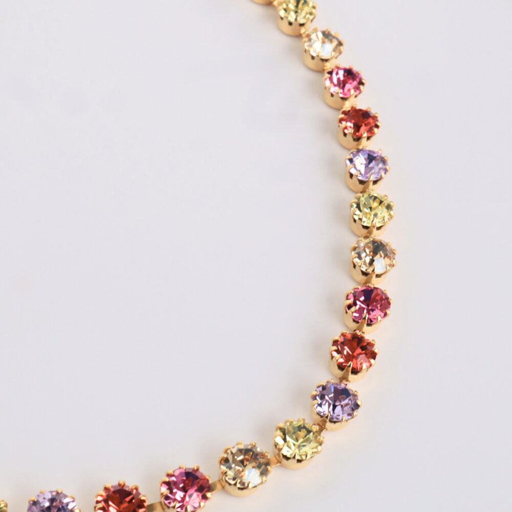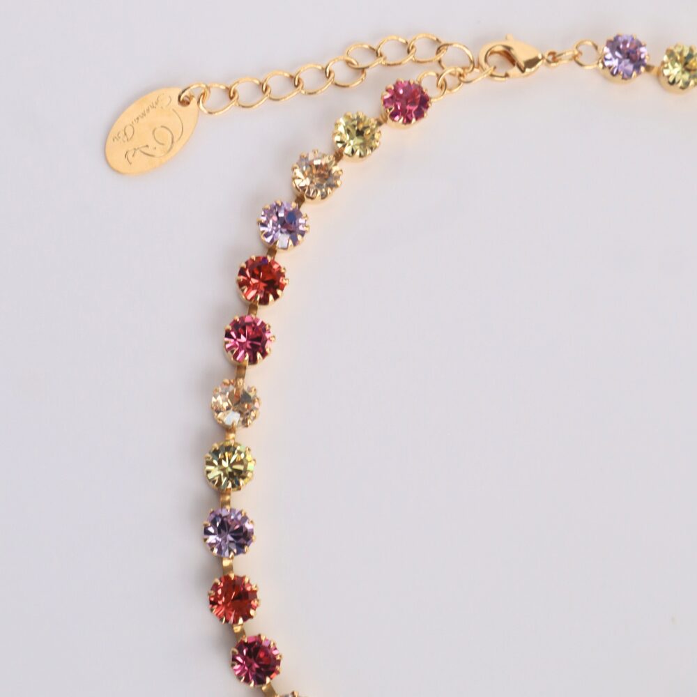 Realizzato con castoni francesi che custodiscono luminosi cristalli Primero, questo girocollo riflette la delicatezza dei riflessi d’acqua e dei giochi di luce tipici delle celebri ninfee. La placcatura in oro giallo 18kt dona calore e raffinatezza, rendendolo un gioiello unico ed elegante.
