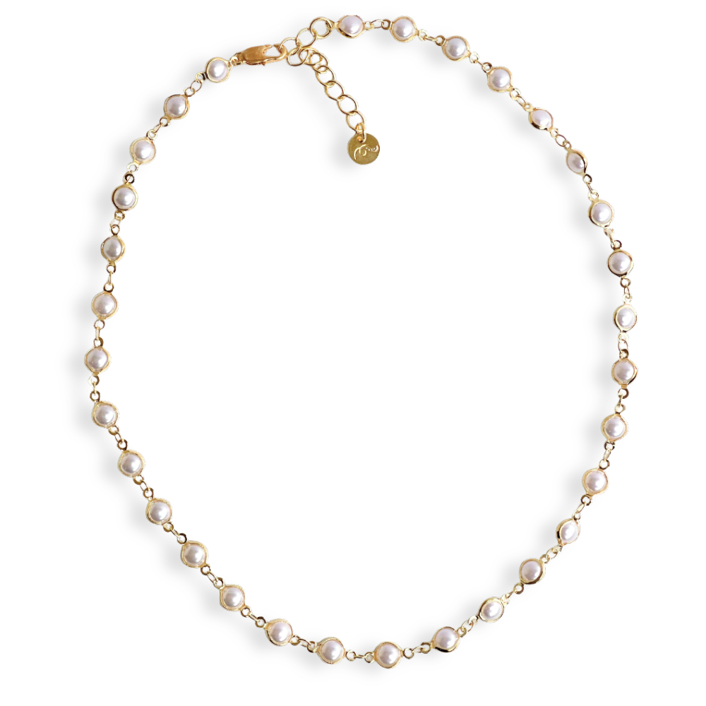 Jacqueline – Collana Girocollo con Dischetti in Perla